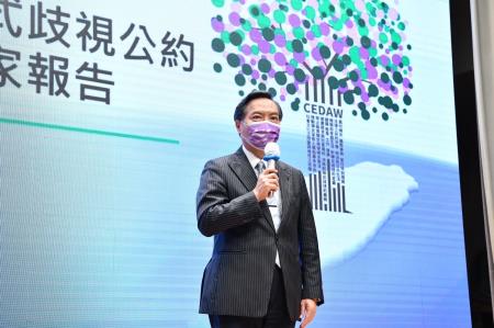 隨後,行政院性別平等處吳秀貞處長也於簡報說明近年來政府推動CEDAW的具體進展,包括:完備數位/網路性別暴力法制、推動「5項性別平等重要議題(108-111)」-跨部會合作推動托育公共化、提升女性經濟力、去除性別刻板印象與偏見、強化高齡社會之公共支持、促進公私部門決策參與之性別平等;提出「我國少子女化對策計畫(107-111)」,提供0-5歲全面照顧、友善家庭的就業職場環境、兒童健康權益與保護、友善生養配套等;制定施行《司法院釋字第七四八號解釋施行法》,推動婚姻平權,使我國成為亞洲第一個完成立法保障同性婚姻的國家;及修正《生產事故救濟作業辦法》、《兒童及少年性剝削防制條例》、《就業服務法》、《民法》等,提升女性生產環境、禁止兒少性剝削及人口販運、男女最低結婚年齡修正為18歲等。國家報告詳細內容,已公布於行政院性別平等會網站(https://gec.ey.gov.tw/),以供社會大眾閱覽。